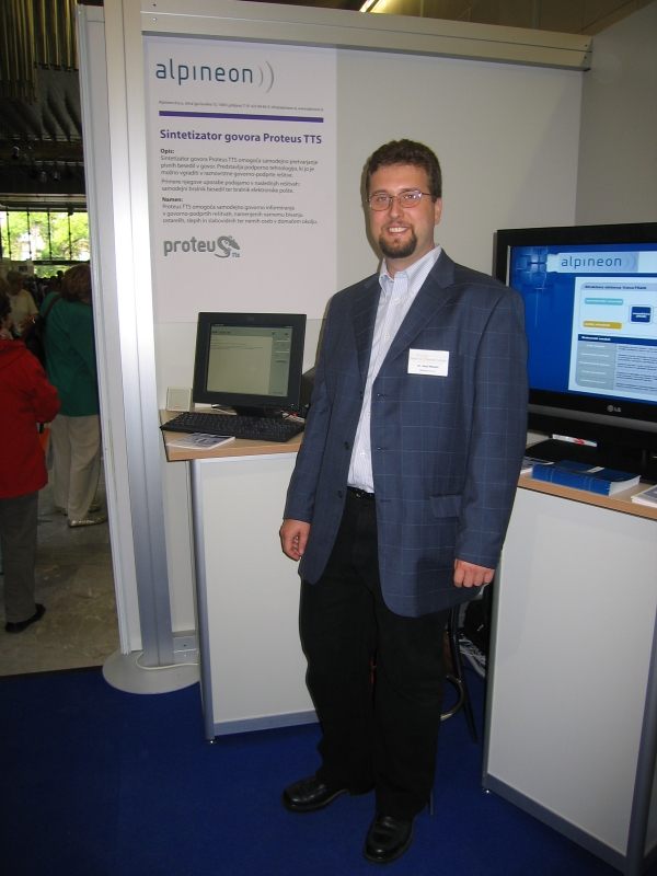 Vabimo Vas, da nas obiščete na razstavnem prostoru podjetja Alpineon v okviru Parka tehnologij za kakovostno starost, ki bo predstavljen na 7. Festivalu za tretje življenjsko obdobje. Festival bo potekal 1. in 2. oktobra 2007 v Cankarjevem domu v Ljubljani, odprt bo od 10. ure do 18. ure. Na našem razstavnem prostoru Vam bomo demonstrirali delovanje sintetizatorja govora za slovenski jezik Proteus TTS. Delovanje sintetizatorja govora boste lahko v živo preskusili tudi sami. Vljudno vabljeni!